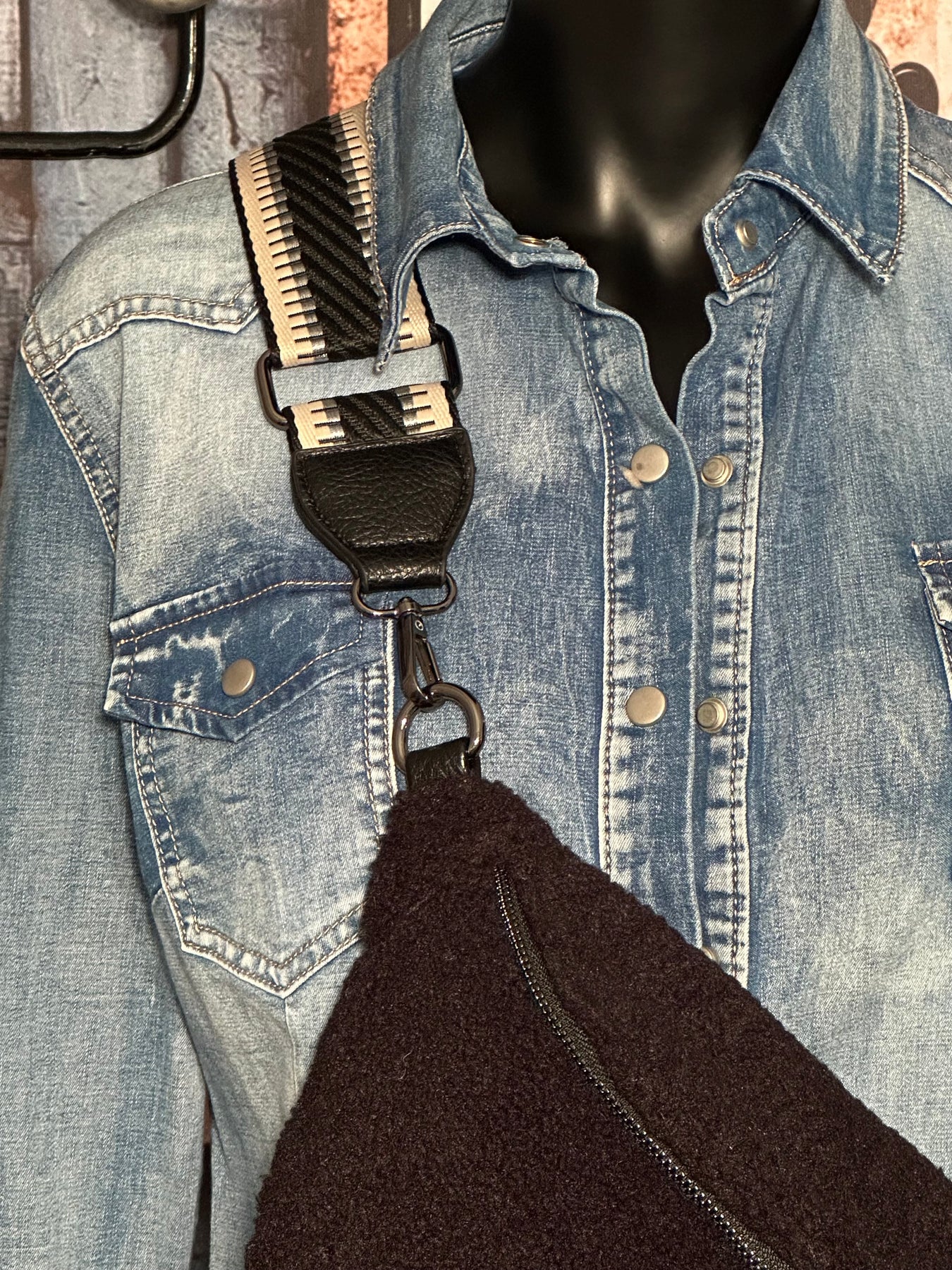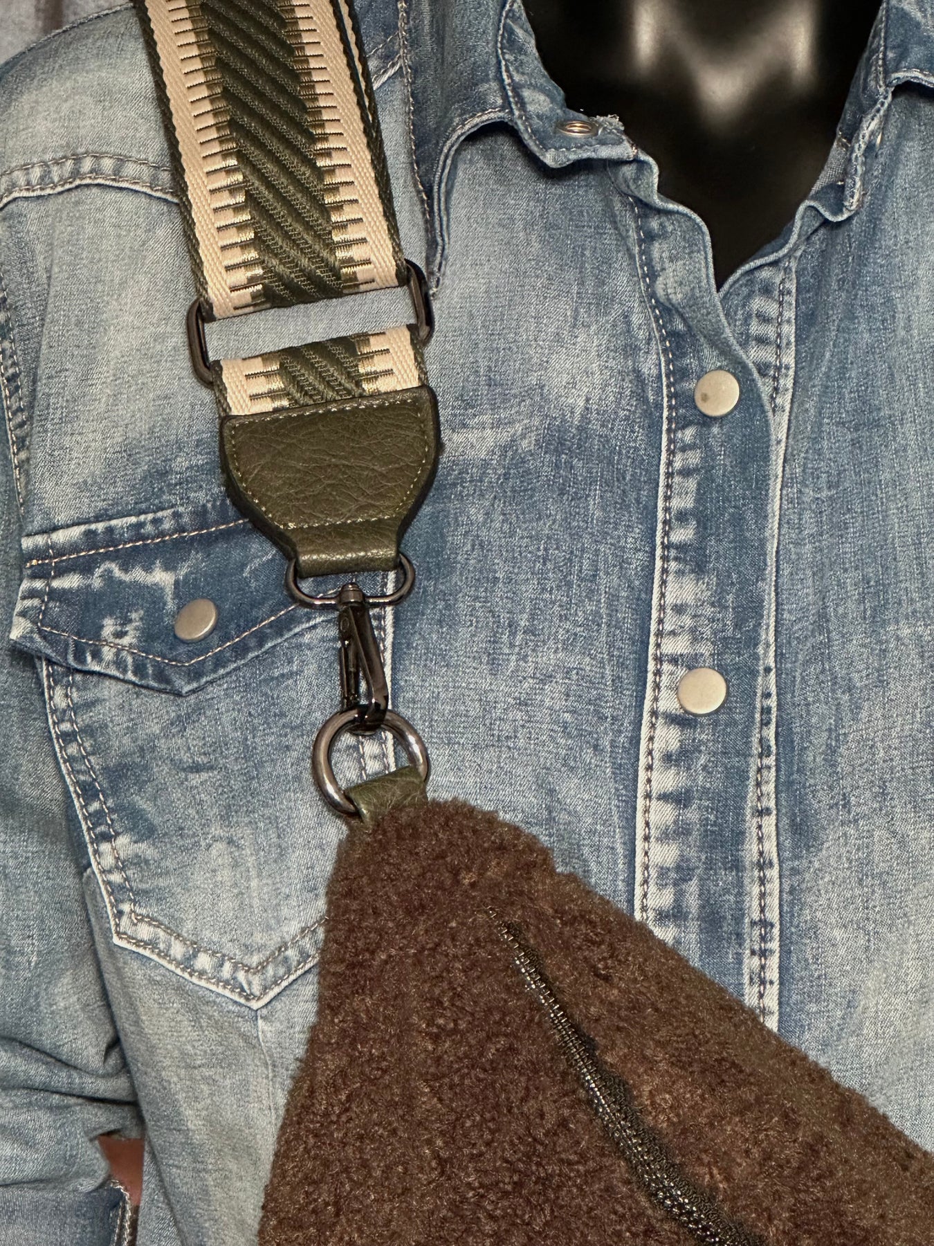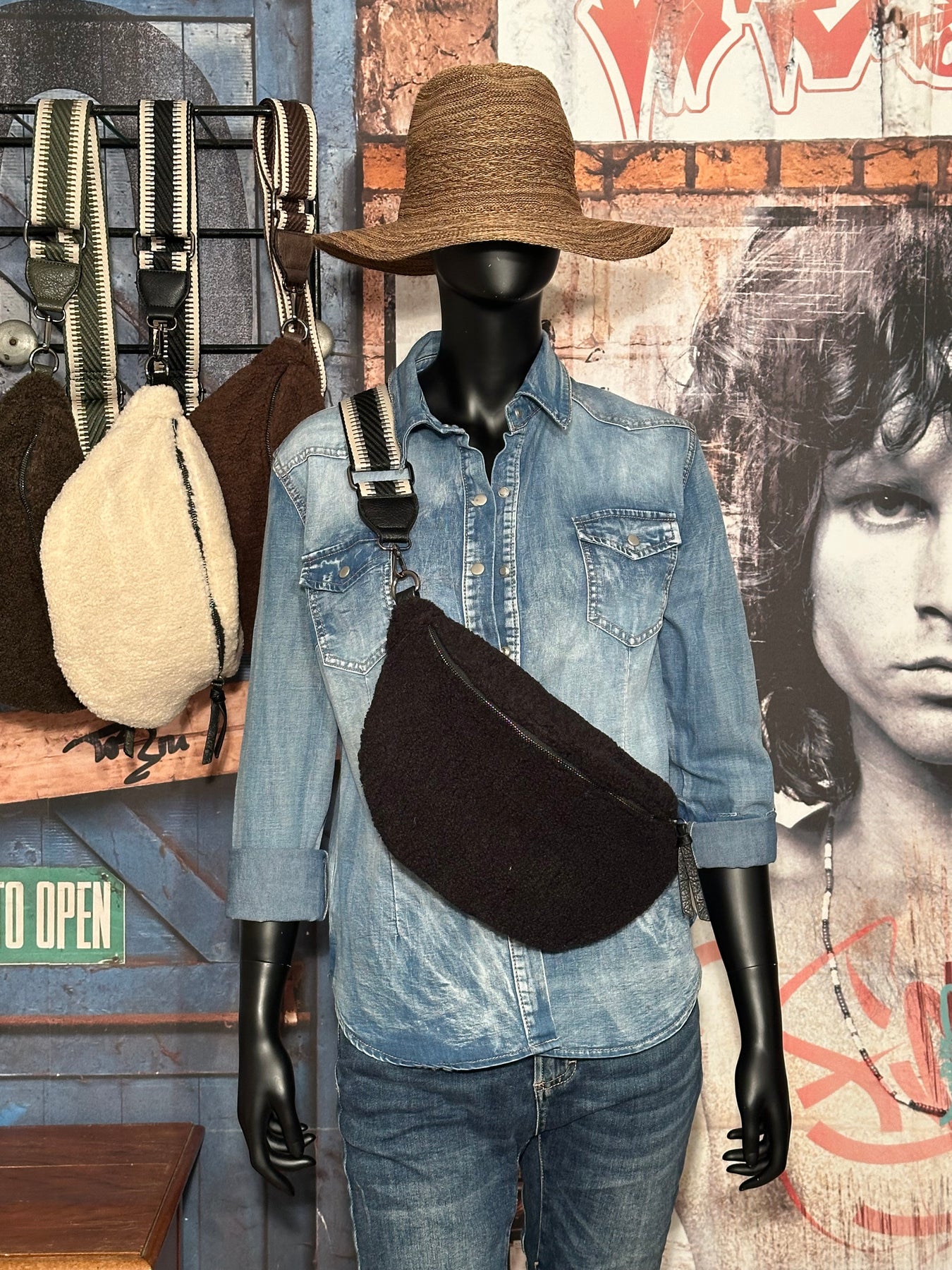 Adoptez le style décontracté et ultra-doux avec notre sac banane effet "Teddy". C'est l'accessoire parfait pour celles qui recherchent à la fois confort, tendance et fonctionnalité. Fermeture zip. Deux poches zippées, une à l'intérieur ainsi qu'un petit compartiment de rangement et une derrière à l'extérieur. Il est livré avec deux bandoulières amovibles, une large en couleurs assorties et l'autre plus fine et de couleur unie. Les boucles et mousquetons sont de couleur anthracite métallisé. Son design moderne et sa matière texturée le rendent idéal pour une sortie en ville ou une journée shopping. Dispo en 4 coloris.