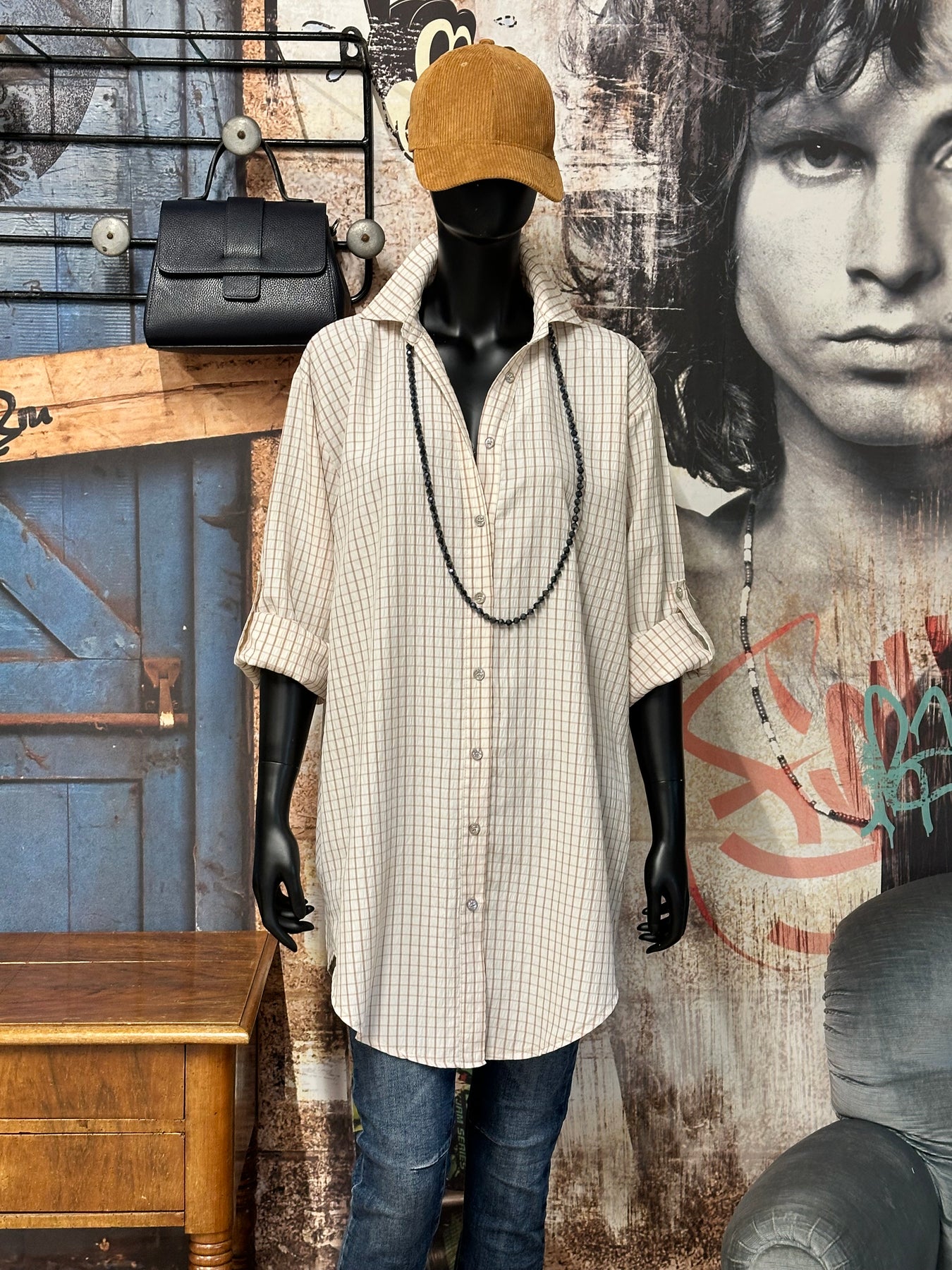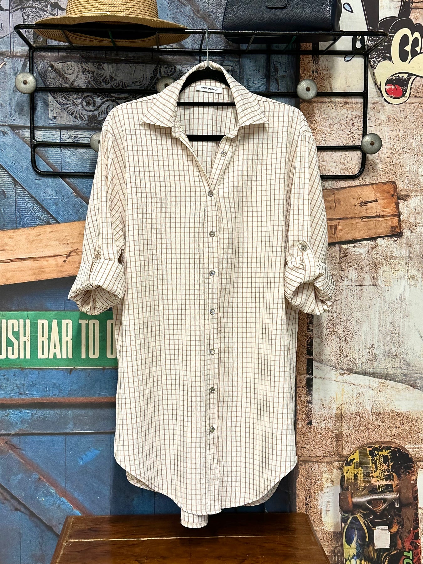Chemisier/tunique à carreaux écru & beige (42/46) MADE IN ITALY