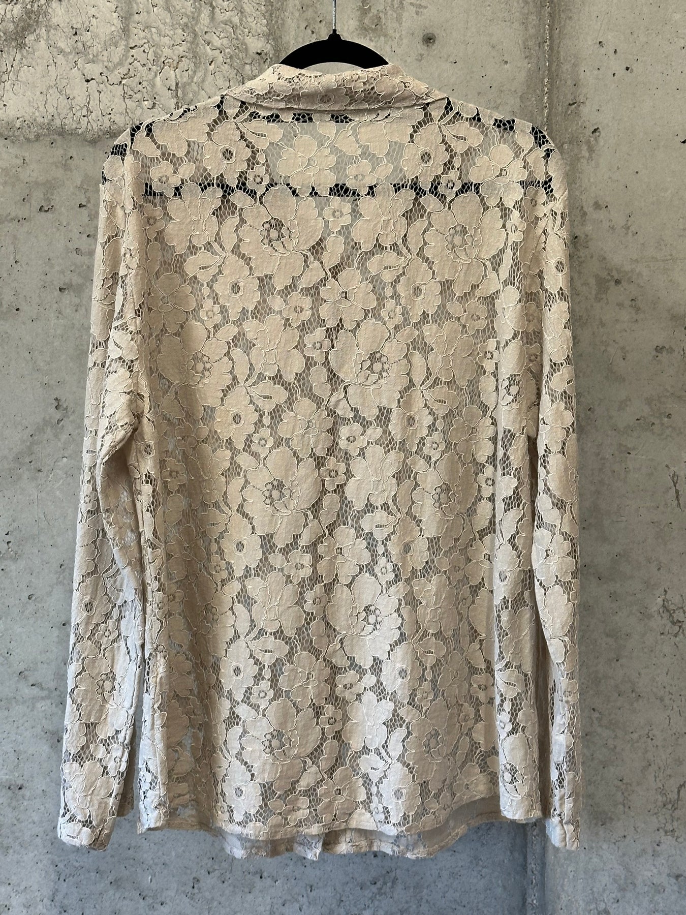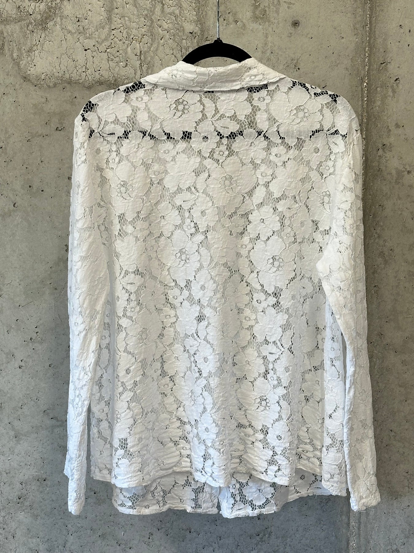 Ajoutez une touche de romantisme et d'élégance à votre garde-robe avec ce sublime chemisier intégralement confectionné en dentelle délicate. Sa transparence subtile et son motif floral en font une pièce polyvalente idéale pour une occasion spéciale ou pour rehausser un look décontracté.