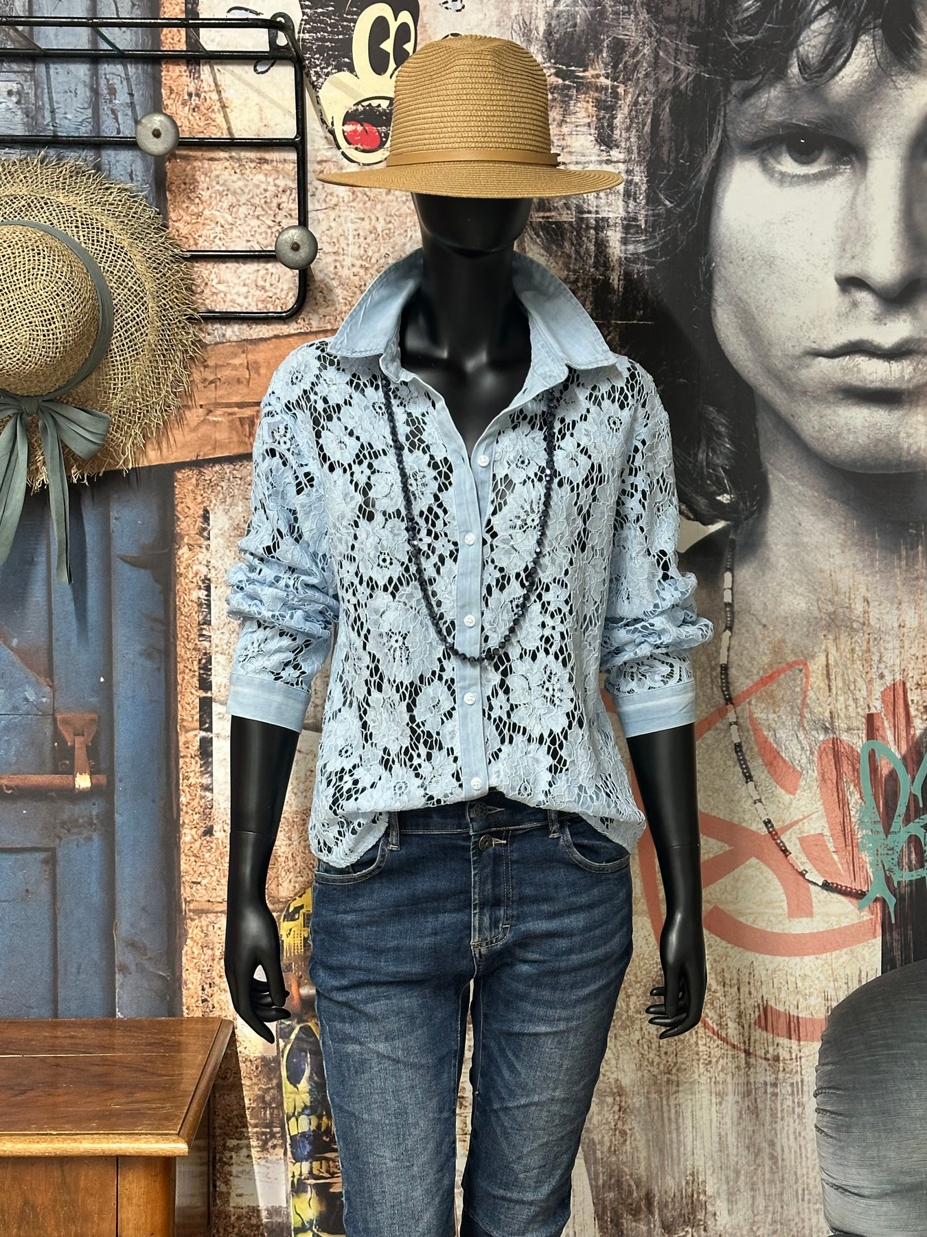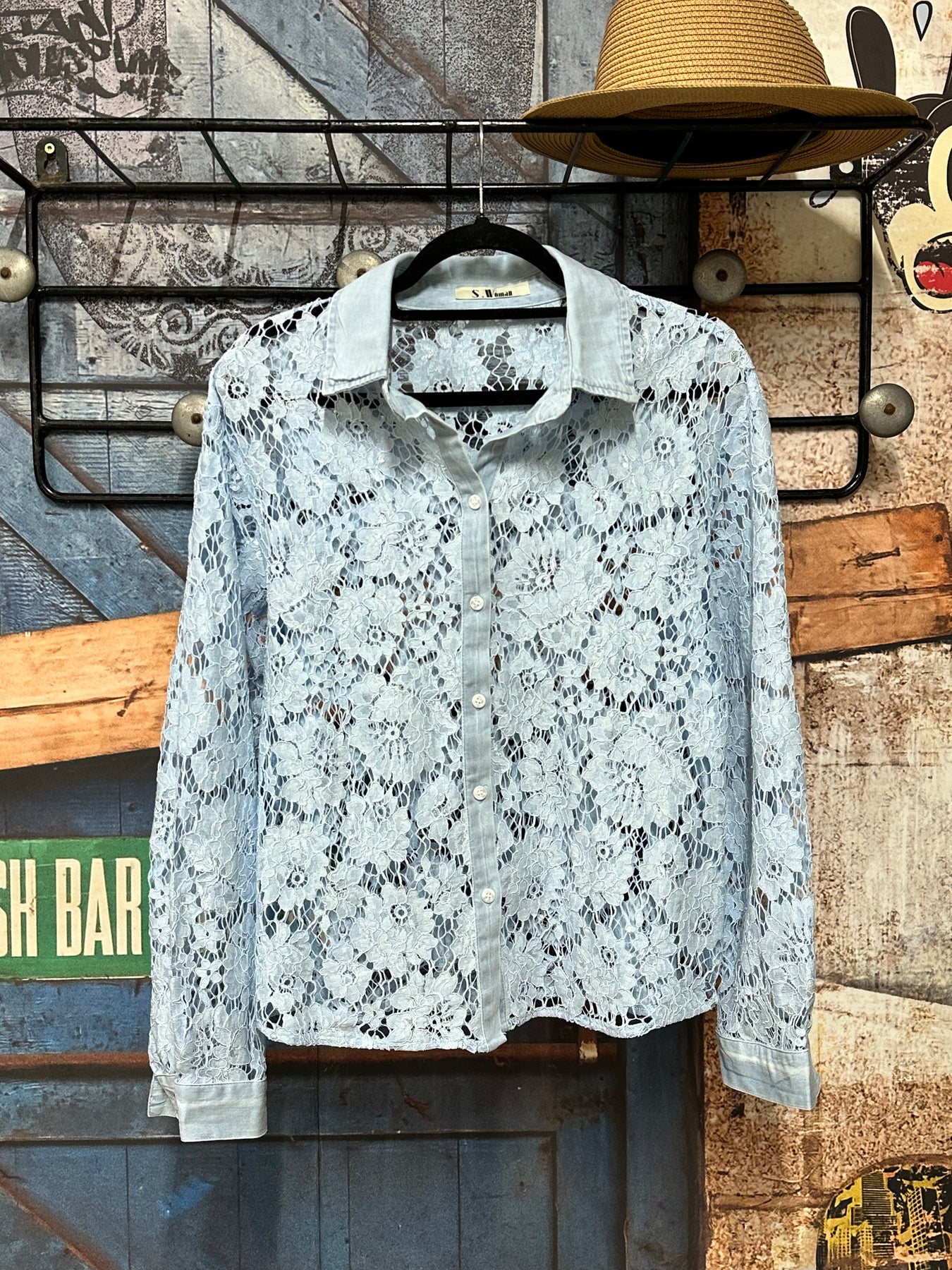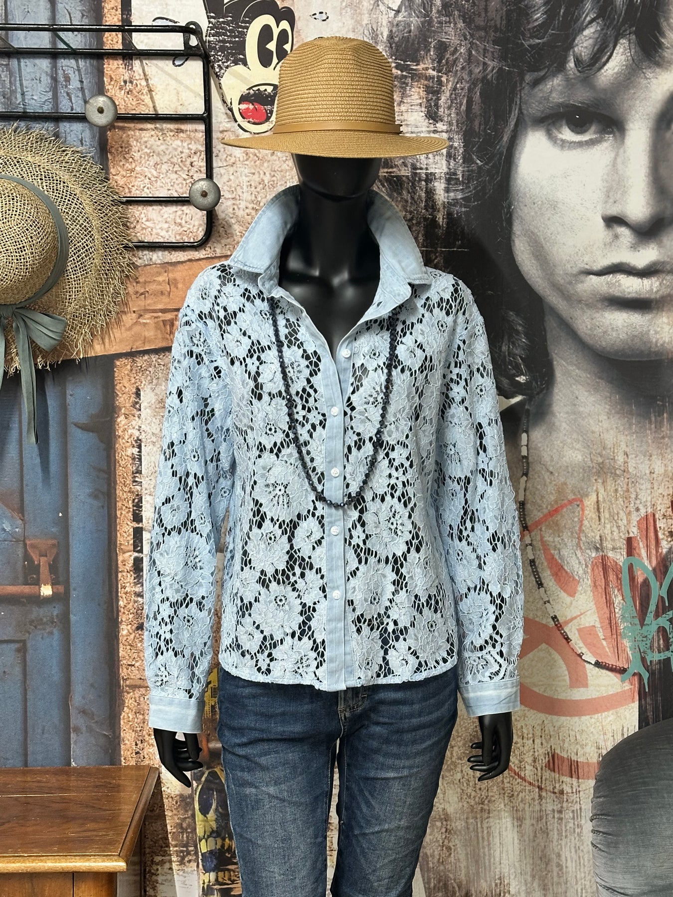 Chemisier en dentelle florale bleu clair (34/36 et 38/40)