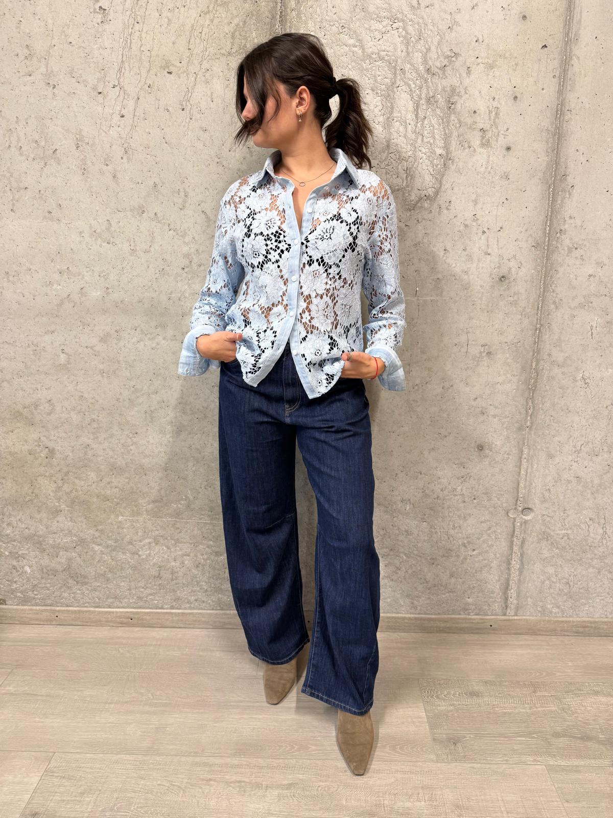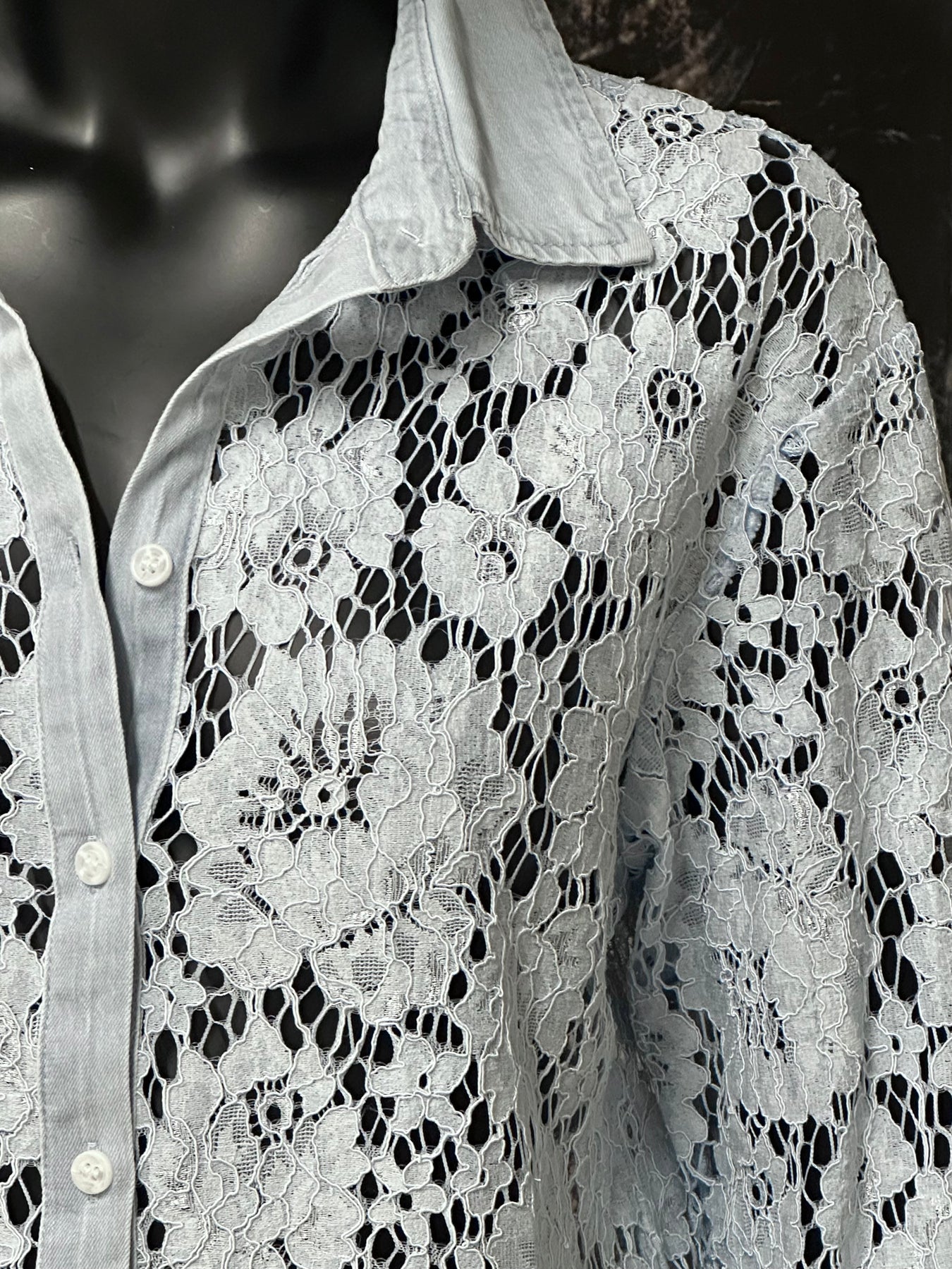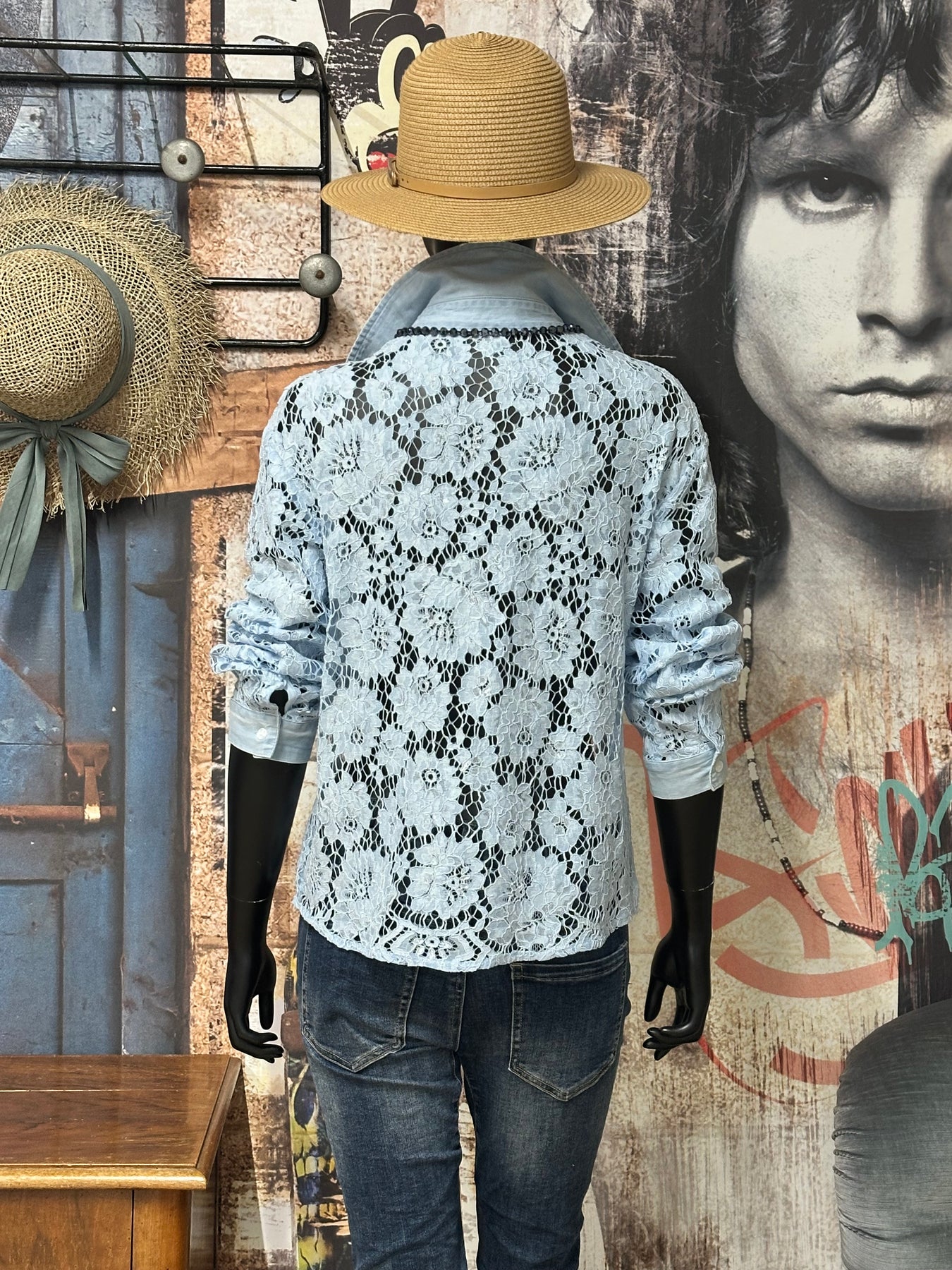Chemisier en dentelle florale bleu clair (34/36 et 38/40)