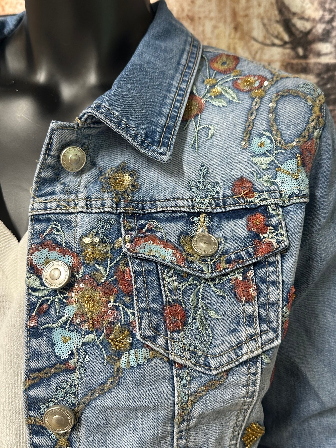 Veste en jean brodée light blue denim (36 ➡️ 44)